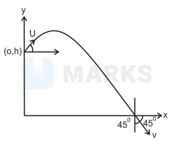 A ball is projected at an angle of above with the horizontal from the top of a tower and strikes the ground in at an angle of with the horizontal. Find the speed with which it was projected.
