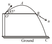 Let us consider a ball is projected from $O$ at an angle of $45^{\circ}$ with horizontal and covering the path $O A B C$ (shown in figure).