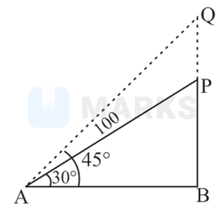 A balloon is rising vertically upwards. At an instant, an observer on the ground, whose distance from the balloon is meters, sees the balloon at an angle of elevation of If the balloon rises further vertically to a point where the angle of elevation as seen by the observer is , then its height (in meters) from the ground is