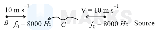 A bat moving at towards a wall sends a sound signal of towards it. On reflection, it hears a sound of frequency . The value of in is close to