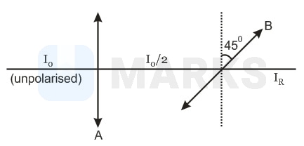 A beam of unpolarised light of intensity is passed through a polaroid and then through another polaroid which is oriented so that its principle plane makes an angle of relative to that of . The intensity of the emergent light is: