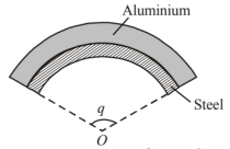 A bimetallic strip is made of aluminium and steel $\left(\alpha_{\mathrm{Al}}\right\rangle$ $\left.\alpha_{\text {steel }}\right)$. On heating, the strip will
