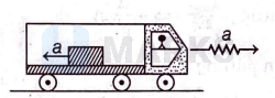 Due to acceleration of bus, block experiences a backward acceleration $a$