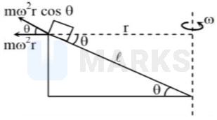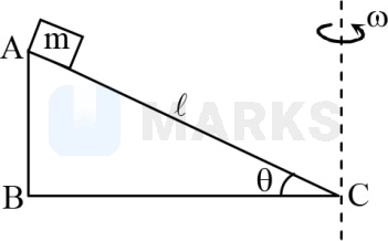 A block of mass is placed at the top of a smooth wedge . The wedge is rotated about an axis passing through as shown in the figure. The minimum value of angular speed such that the block does not slip on the wedge is-