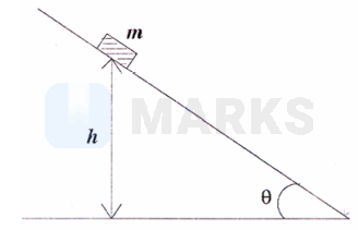 A block of mass $\mathrm{m}$ is sliding down an inclined plane with constant speed. At a certain instant $\mathrm{t}_{0}$, its height above the ground is $\mathrm{h}$. The coefficient of kinetic friction between the block and the plane is $\mu$. If the block reaches the ground at a later instant $\mathrm{t}_{\mathrm{g}}$, then the energy dissipated by friction in the time interval $\left(\mathrm{t}_{\mathrm{g}}-\mathrm{t}_{0}\right)$ is-
