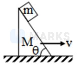 A block of mass is stationary with respect to a wedge of mass moving with uniform speed on a horizontal surface. Find the work done by friction force on the block in second.