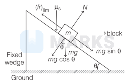 Limiting friction, $(f r)_{\lim }=\mu_s N=\mu m g \cos \theta$