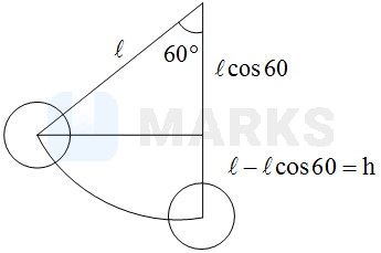 A bob hangs from a rigid support by an inextensible string of length . It is released from rest when string makes an angle with vertical. The speed of the bob at the lowest position is