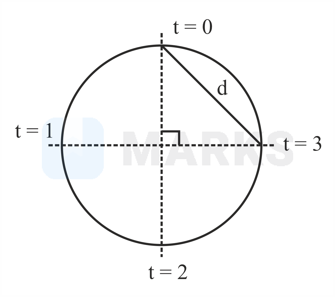 A body is moving with constant speed, in a circle of radius . The body completes one revolution in . At the end of second, the displacement of body (in ) from its starting point is: