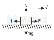 A body of mass is moving on a horizontal surface by applying a force of in the forward direction. The body moves with a constant velocity of . Work done by the force of friction in the first seconds is