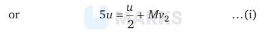 \text { or } \quad 5 u+M \times 0 & =5 \times \frac{u}{10}+M v_2