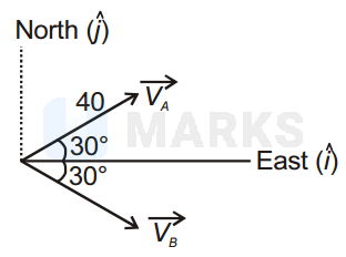 A car A is moving with speed along a straight line north of east and another car B is moving with same speed along a straight line south of east. The relative velocity of car A as observed from the car B is