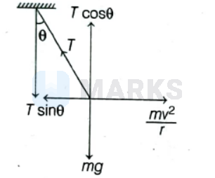 & \frac{T \sin \theta}{T \cos \theta}=\frac{m v^2 / r}{m g} \Rightarrow \tan \theta=\frac{v^2}{r g}=\frac{10^2}{10 \times 10}=1 \\