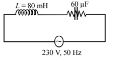 A circuit containing a $80 \mathrm{mH}$ inductor and a $60 \mu \mathrm{F}$ capacitor in series is connected to $230 \mathrm{~V}, 50 \mathrm{~Hz}$ supply. The resistance of the circuit is negligible.