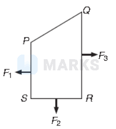 A closed loop PQRS carrying a current is placed in a uniform magnetic field. If the magnetic forces on segments $P S, S R$ and $R Q$ are $F_1, F_2$ and $F_3$ respectively and are in the plane of the paper and along the directions shown, the directions shown, the force on the segment $Q P$ is