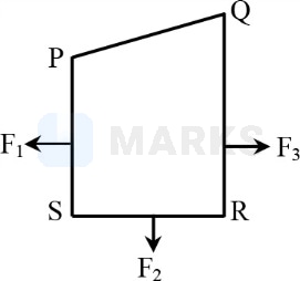 A closed-loop carrying a current is placed in a uniform magnetic field. If the magnetic forces on segments , and are , and respectively and are in the plane of the paper and along the directions shown, the force on the segment is
