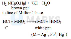 A colourless water soluble solid $A$ on heating gives equimolar quantities of $B$ and $C . B$ gives dense white fumes with $\mathrm{HCl}$ and $C$ does so with $\mathrm{NH}_{3} . B$ gives brown precipitate with Nessler's reagent and $C$ gives white precipitate with nitrates of $\mathrm{Ag}^{+}, \mathrm{Pb}^{+}$and $\mathrm{Hg}^{+} . A$ is