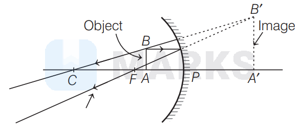 Image formed by a concave mirror is erect, enlarged and virtual only when object is placed between pole and focus as shown below,