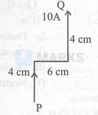 A conducting wire $\mathrm{PQ}$ carries a current $10 \mathrm{~A}$ as shown in the figure. It is placed in a uniform magnetic field 5 $\mathrm{T}$ which is acting normally outside from the paper. Then the net force experienced by it is