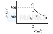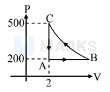 The path $\mathrm{BC}$ is an isothermal. The work done by the gas during one complete cycle, beginning and ending at A, is nearly-