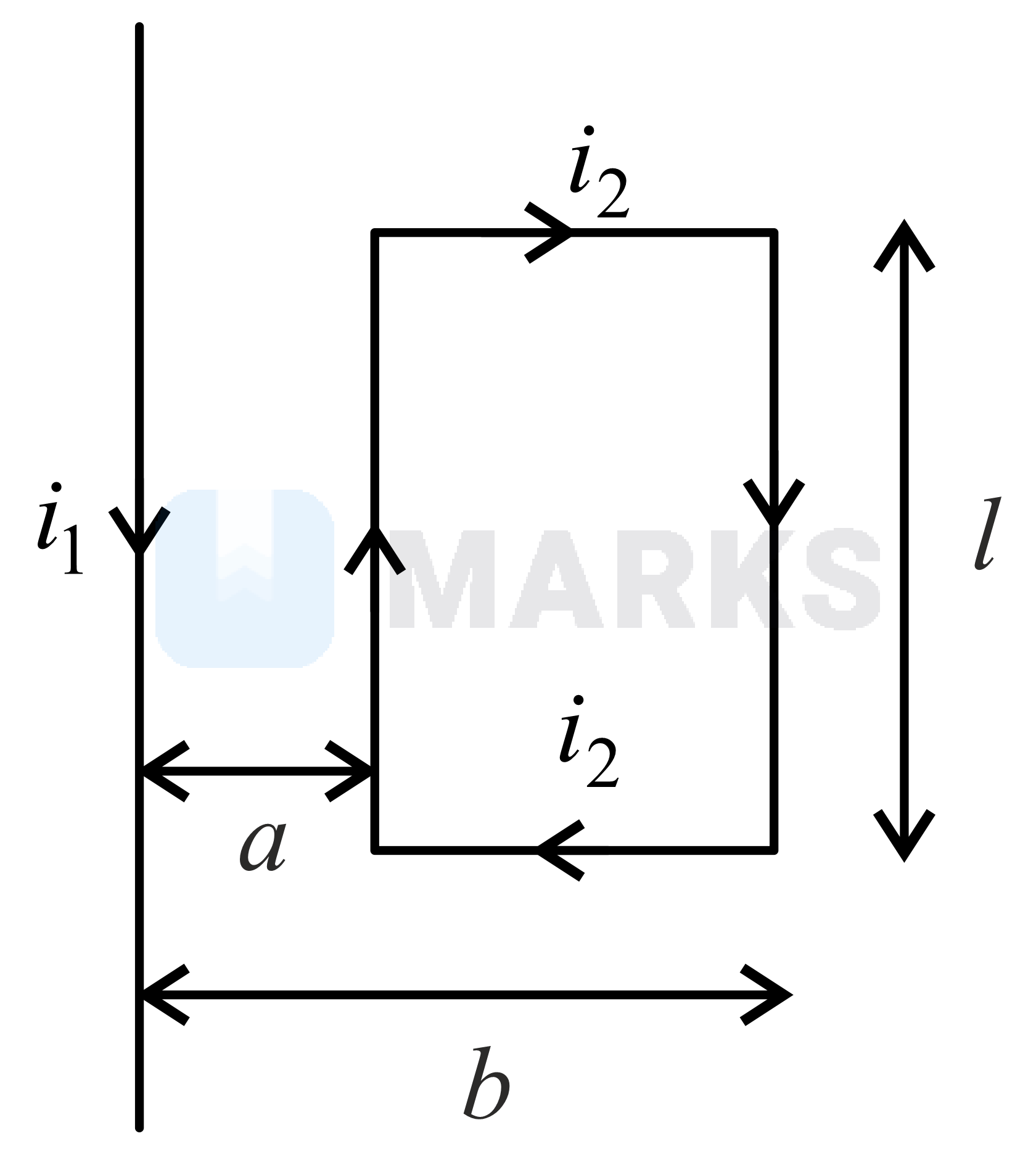 A current carrying square loop is placed near a straight infinitely long current carrying wire as shown in figure. The torque acting on the loop is