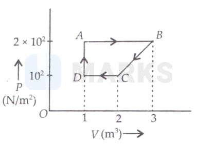 A cyclic process is shown in the figure. Work done during the cyclic process is