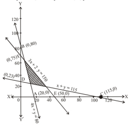 Objective function is to maximize $\mathrm{Z}=6 \mathrm{x}+3 \mathrm{y}$, subject to constraints are $12 x+3 y \geq 240$,