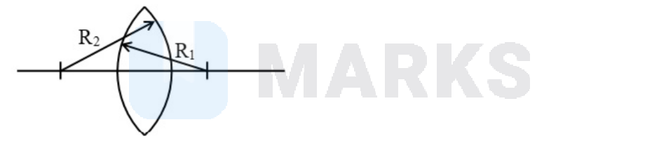 Lens maker formula: $\frac{1}{\mathrm{f}}=(\mu-1)\left(\frac{1}{\mathrm{R}_1}-\frac{1}{\mathrm{R}_2}\right)$