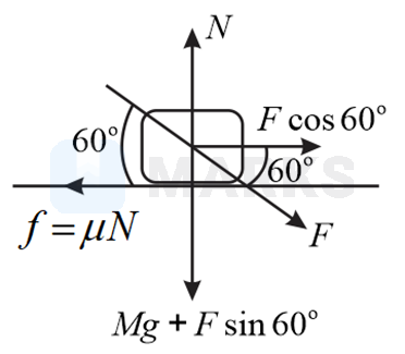 A force is applied on a block of mass which rests on a horizontal surface with a coefficient of friction. The maximum value of for which the block doesn't move, is [Take ]