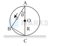 A frictionless wire $\mathrm{AB}$ is fixed on a sphere of radius $\mathrm{R}$. A very small spherical ball slips on this wire. The time taken by this ball to slip from A to $\mathrm{B}$ is