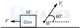 A gun (mass = ) fires a bullet (mass = ) with speed relative to the barrel of the gun which is inclined at an angle of with horizontal. The gun is placed over a smooth horizontal surface. Find the recoil speed of the gun.