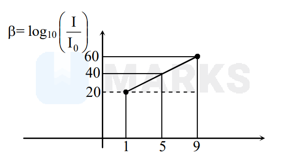 \beta=10 \log \left(\frac{\mathrm{I}}{\mathrm{I}_{0}}\right) \\