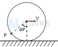 A hoop rolls on a horizontal ground without slipping with a linear speed $10 \mathrm{~ms}^{-1}$. Speed of a particle at a point $\mathrm{P}$ on the circumference of the hoop as shown in the figure is