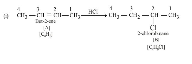 Compound 'A' is showing addition reaction with $\mathrm{HCl}$. Therefore it is an alkene. A on ozonolysis gives 2 moles of acetaldehyde. Therefore ' $\mathrm{A}$ ' is