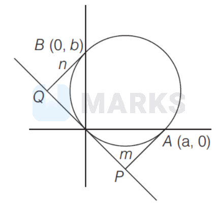 A line meets the coordinate axes at $A$ and $B$. If the perpendicular distances from $A$ and $B$ to the tangent drawn at the origin to the circumcircle of $\triangle O A B$ are $m$ and $n$ respectively, then the diameter of that circle Is