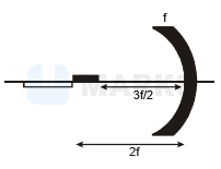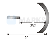 A linear object is placed along the axis of a mirror as shown in the figure. If is the focal length of the mirror, then the length of the image is