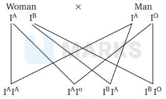 From the above cross, it is clear that the occurence of B blood group progeny indicates that man is heterozygous for the allele \(A\). If the man is homozygous for the allele \(A\), the progeny will have either an \(A\) or \(A B\) type blood group.
