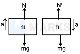 A man stands on a weighing machine kept inside a lift. Initially, the lift is ascending with the acceleration due to which the reading is . Now the lift descends with the same acceleration and reading is of initial. Find the acceleration of lift.