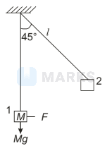 A mass of $M \mathrm{~kg}$ is suspended by a weightless string. The horizontal force that is required to displace it until the string makes an angle of $45^{\circ}$ with the initial vertical direction is