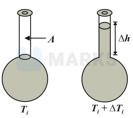 We use the definition of the coefficient of expansion of the glass, the volume of liquid in the capillary will be , where is the cross-sectional area of the capillary. Let represent the volume of the bulb.