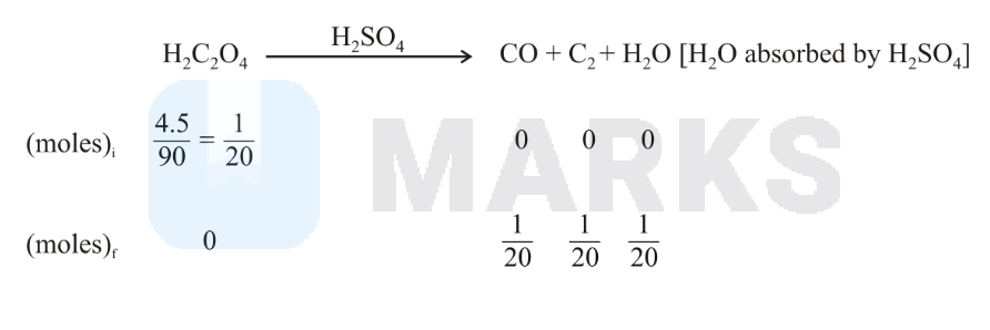 A mixture of formic acid and oxalic acid is treated with concentrate . The evolved gaseous mixture is passed through pellets. What will be the weight in grams of the remaining product at ?