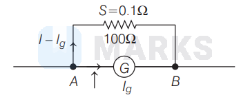 A moving coil galvanometer of resistance $100 \Omega$ is used as an ammeter using a resistance $0.1 \Omega$. The maximum deflection current in the galvanometer is $100 \mu \mathrm{A}$. Find the minimum current in the circuit, so that ammeter shows maximum deflection?