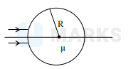 A narrow parallel beam of light falls on a glass sphere of radius $\mathrm{R}$ and refractive index $\mu$ at normal incidence. The distance of the image from the outer edge is given by-