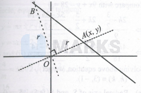 $\begin{aligned} & \text { For } B, x=0+r \cos \left(\theta+90^{\circ}\right)=-r \sin \theta \\ & y=0+r \sin \left(90^{\circ}+\theta\right) \\ & y=r \cos \theta \\ & B(-r \sin \theta, r \cos \theta) \\ & \because \quad A, B \operatorname{lies} \text { on } 2 x+3 y=6 \\ & \therefore \quad 2 r \cos \theta+3 r \sin \theta=6 \\ & \quad 3 r \cos \theta-2 r \sin \theta=6 \\ & \therefore \quad 2 r \cos \theta+3 r \sin \theta=3 r \cos \theta-2 r \sin \theta \\ & \quad 5 r \sin \theta=r \cos \theta \\ & \quad \tan \theta=\frac{1}{5} \\ & \quad \sin \theta=\frac{1}{\sqrt{26}}, \cos \theta=\frac{5}{\sqrt{26}} \\ & \quad \frac{2 \times 5}{\sqrt{26}} r+\frac{3 \times 1}{\sqrt{26}} r=6 \\ & \Rightarrow \quad 13 r=6 \sqrt{26} \Rightarrow r=\frac{6 \sqrt{2}}{\sqrt{13}} \\ & \text { Area }=\frac{1}{2} \times r \times r=\frac{r^2}{2}=\frac{36 \times 2}{2 \times 13}=\frac{36}{13} .\end{aligned}$