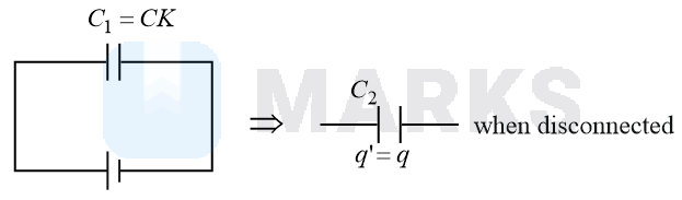 A parallel plate air capacitor of capacitance is connected to a cell of emf and then disconnected from it. A dielectric slab of dielectric constant , which can just fill the air gap of the capacitor, is now inserted in it. Which of the following is incorrect?