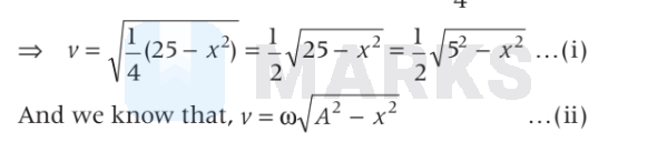 So, on comparing Eqs. (i) and (ii), we get Angular frequency, $\omega=\frac{1}{2} \mathrm{rad} / \mathrm{s}$ Amplitude, $A=5 \mathrm{~m}$ So, time period, $T=\frac{2 \pi}{\omega} \Rightarrow T=\frac{2 \pi}{(1 / 2)} \Rightarrow T=4 \pi \mathrm{s}$