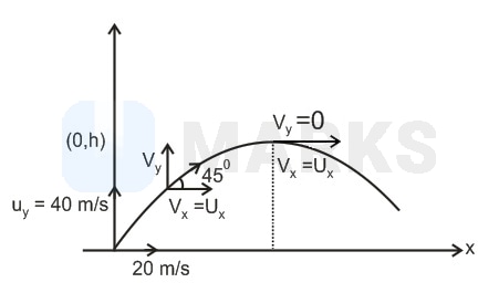 A particle is projected in the X-Y plane. after projection, the velocity of the particle makes an angle with the X-axis. after projection, it moves horizontally. Find the velocity of projection (use )