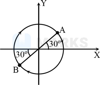 A particle moves with a speed in a circle of radius . When the particle reaches from to as shown in the figure, then component of average velocity is