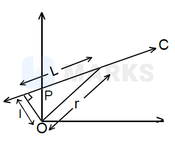 A particle of mass $m$ moves along line $P C$ with velocity $v$ as shown. What is the angular momentum of the particle about $\mathrm{P} ?$