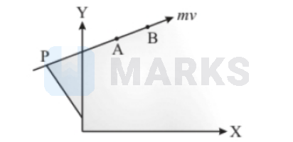 A particle of mass $m$ moves in the $X Y$ plane with a velocity $v$ along the straight line $\mathrm{AB}$. If the angular momentum of the particle with respect to origin $\mathrm{O}$ is $L_A$ when it is at A and $L_B$ when it is at B, then:
